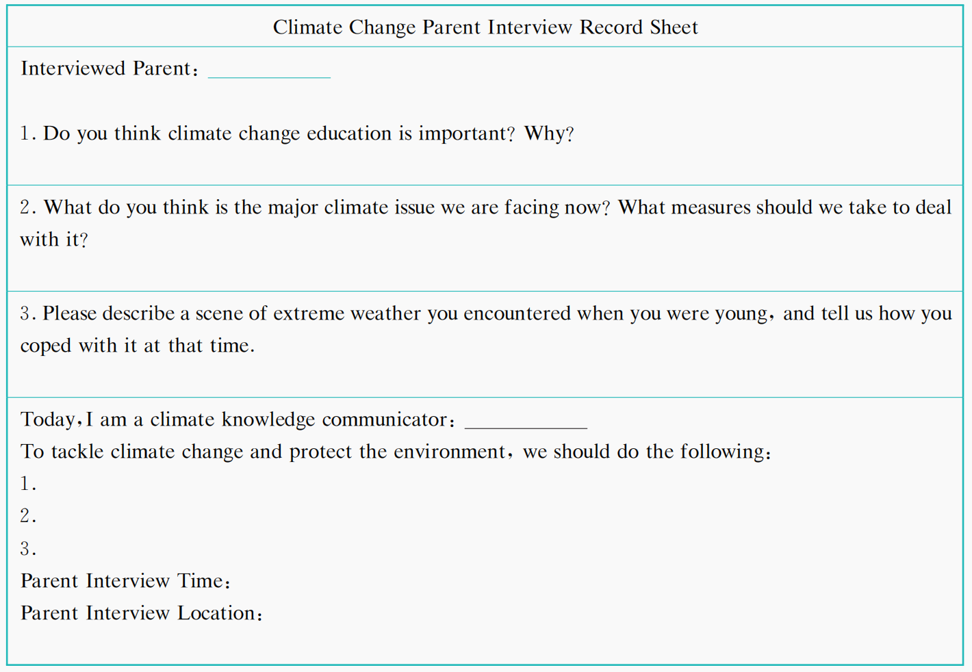 Secondly, the social follow-up activity was extended by inviting all class members to participate in parent interviews, where they shared climate knowledge with their parents.
